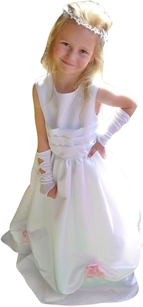 Bimaro Kommunionkleid Linette Festkleid Weiss Lang Mit Reifrock Edler Satin Bluten Perlen Kommunion Festlich Madchen Kommunion Kleider Festliche Kleider Kleider