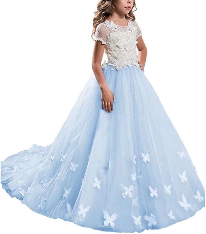 Vickyben Schoenes Cap Aermel Blumen Schmetterling Tuell Blumenmaedchen Kleid Kommunion Kleid Ballkleid Fuer Hochzeit Festlich Festzug Lang Amazon De Bekleidung