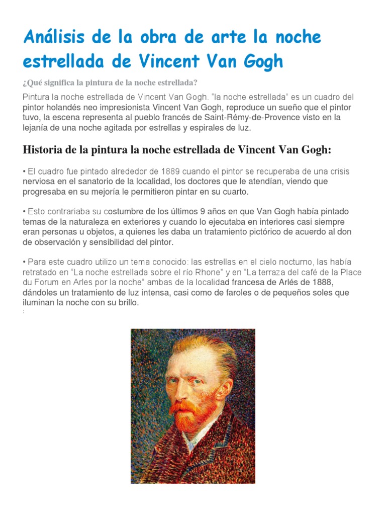Análisis de la obra de arte la noche estrellada de Vincent Van Gogh.docx | Vincent Van Gogh | Pinturas